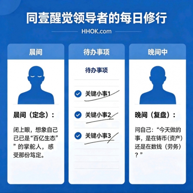 晨间(定念):闭上眼,想象自己已是“百亿生态”的掌舵人,感受那份笃定。