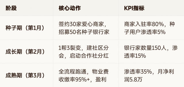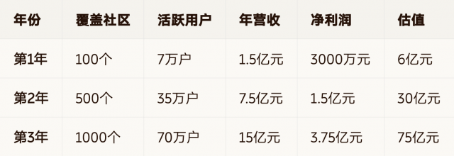 3年:覆盖1000社区,10万银行家,年营收15亿,净利润3.75亿5年:成为社区信任经济基础设施,估值超150亿,启动IPO