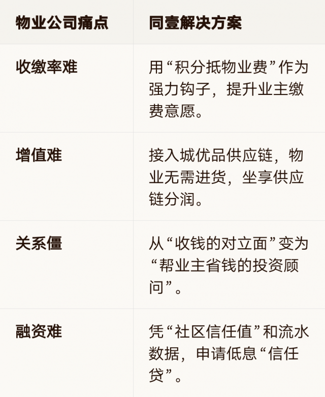 物业公司将作为特殊的“爱心商家”入驻同壹平台,但逻辑更闭环: