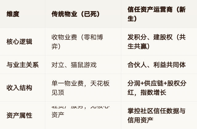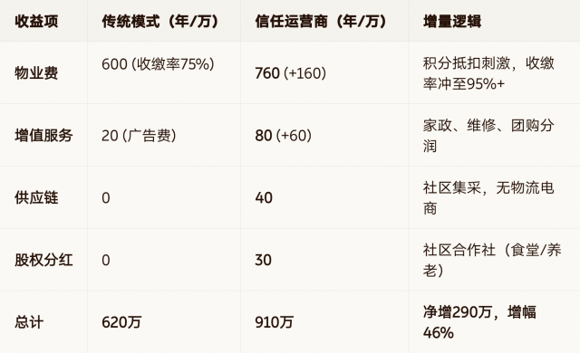以2000户中型社区为例,传统物业 vs 信任资产运营商: