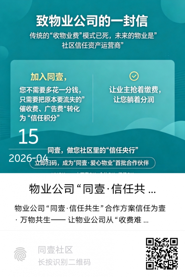 资金安全:业主缴费直接进入物业公司对公账户,同壹平台不经手资金,消除挪用嫌疑。