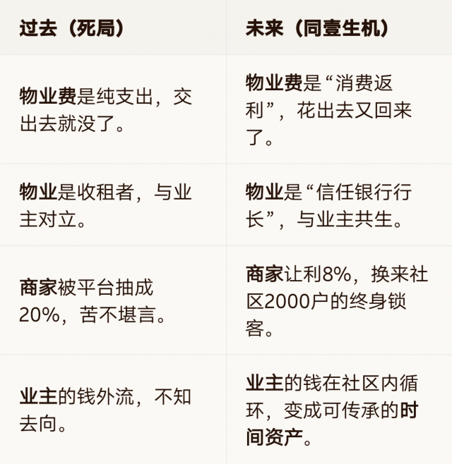 未来的社区,不再是“物业催费、业主躲费”的战场,而是“你消费、我买单”的共生体。