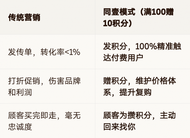 同壹模式是“发积分、建链接、锁终身”,把一次顾客变成终身资产。