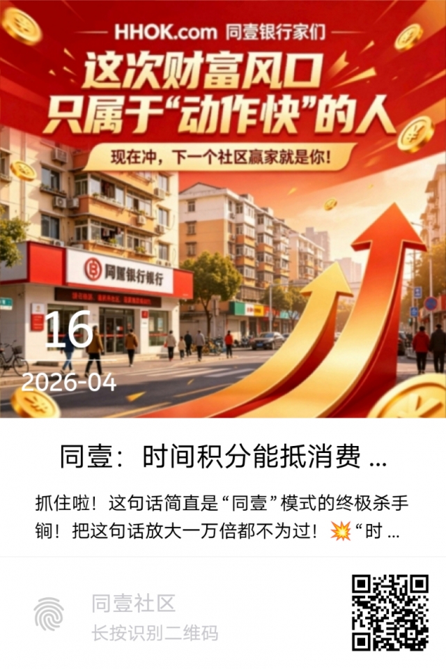 ✅ 同壹模式:管道式收入。一次锁定商家和物业的终身分润!只要社区还在运转,只要有人在里面消费,你的“信任银行”就有源源不断的息差分润进账!