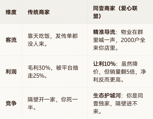 “张老板,你在美团上那是‘卖淫式’赚钱,给平台打工。来同壹,这是‘结婚式’赚钱。让利10%,买断这2000户未来十年的买菜钱,你算算账,哪个划算?”