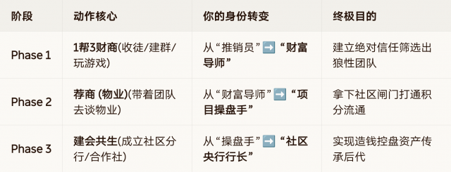 Phase 3|建会共生(成立社区分行/合作社)|从“操盘手”➡️ “社区央行行长”|实现造钱控盘/资产传承后代
