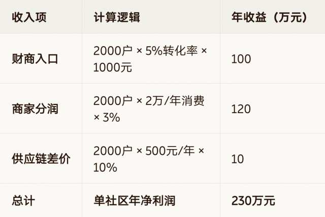 盈利爆发:通过“1帮3”裂变,锁定物业与商家流水,赚取终身管道分润。