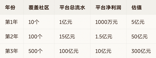目标:覆盖10个社区,平台月流水过千万,净利润突破200万。