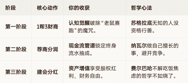结果:你的“主动收入”转化为“被动收入”。此时,你不再为工资打工,而是为“分润”打工。