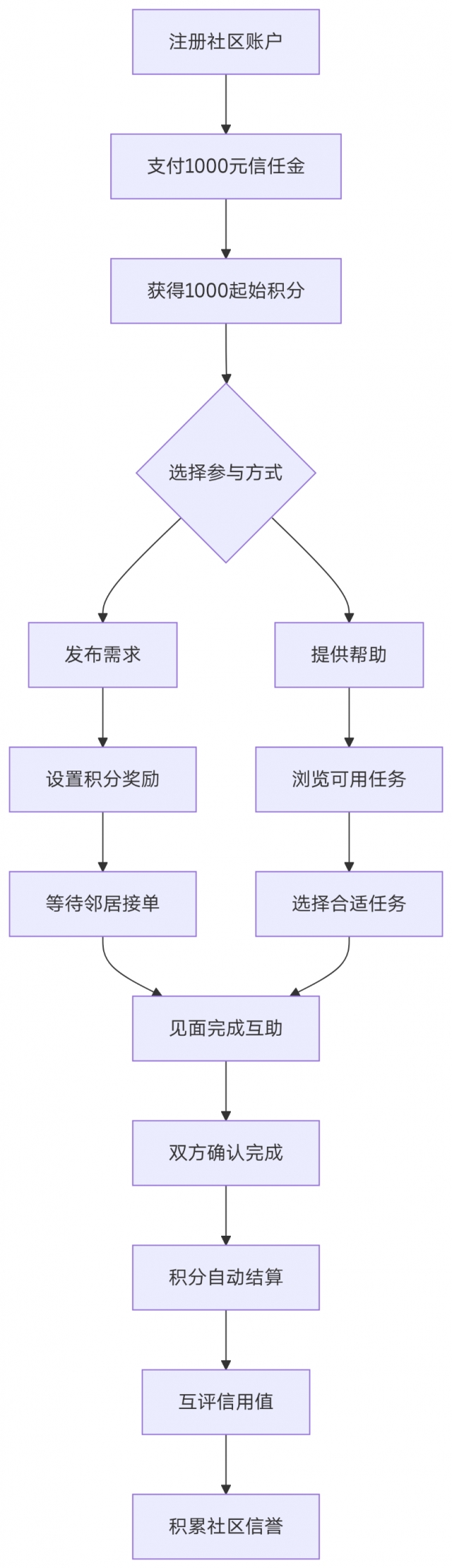 · 需要帮助:发布需求 → 设置积分奖励 → 等待接单